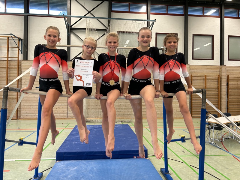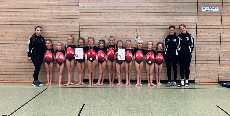 Turnerinnen: Friederike Schwartz, Paula Hemmer, Lara-Sophie Stoll, Emilia Hamm, Sophie Loew, Juna Baltes