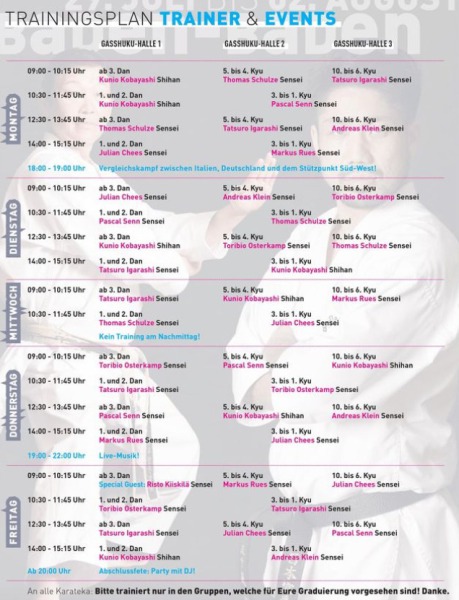 Trainingszeiten auf einen Blick